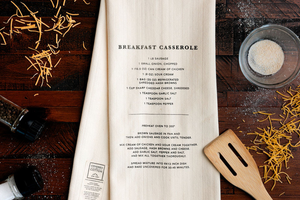 Six of our family's favorite recipes featured on our signature 100% cotton hand towels. Whether as a gift or for your own home, these recipe hand towels are sure to be a classic and treasured part of any kitchen.